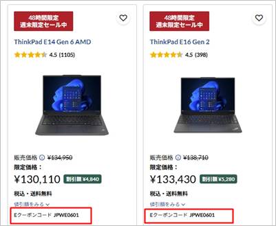 レノボの割引きeクーポンコードは、特設販売ページで表示されるのが特徴です!